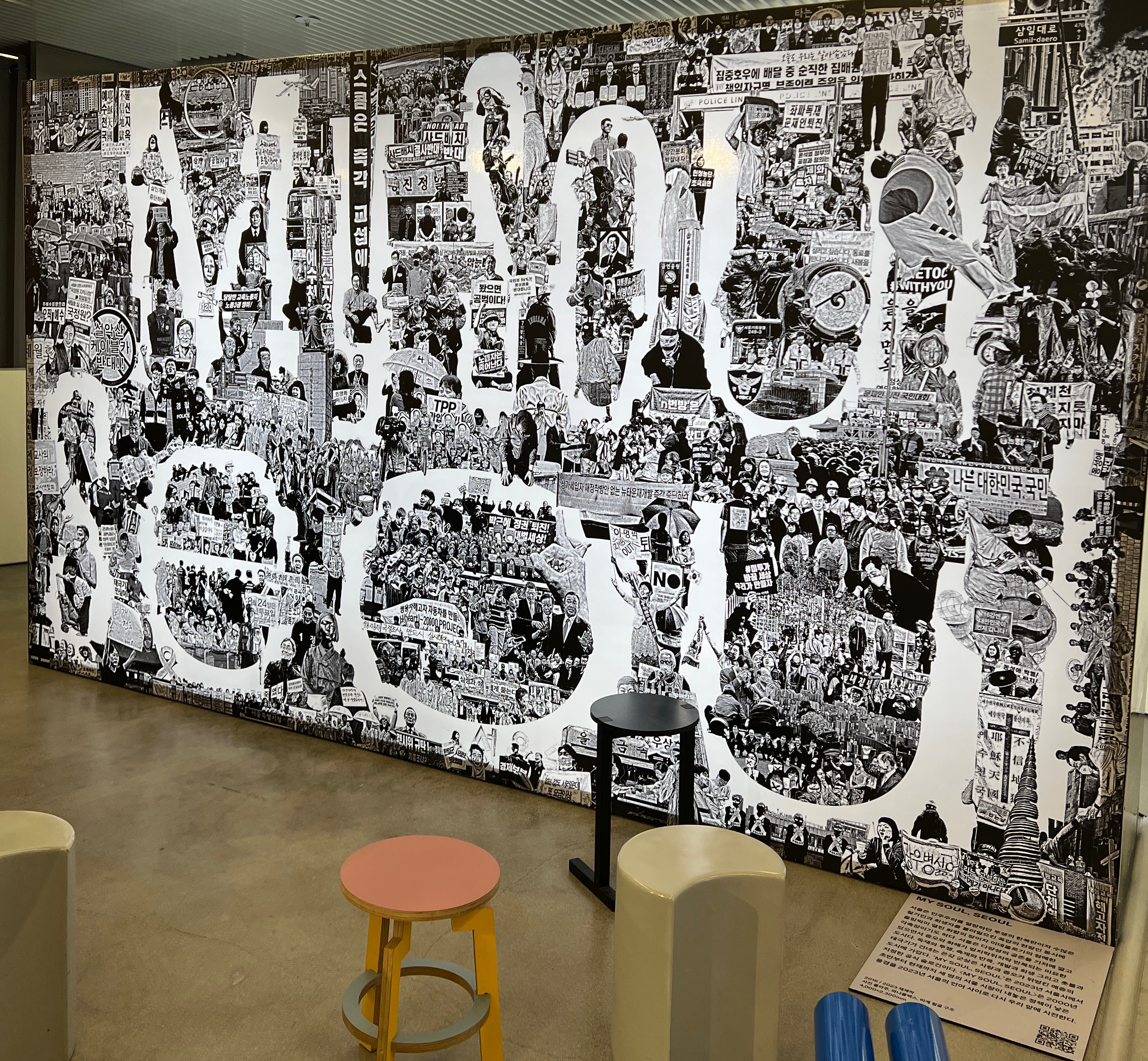 입구 기준 좌측 벽면과 입구 월의 반대편에는 몇 가지 설치물과 규모가 큰 DID가 있다. 2022년 문화역서울248에서 진행된 길몸삶터에서 일상의실천이 큐레이션한 전시를 봤으나 실제 그들의 설치물을 보는 것은 처음이었다. 가 보고 싶었던 타이포잔치에 전시된 감정조명기구까지 있었는데 아쉽게도 토크 공간과 겹쳐서 해보지 못했다.