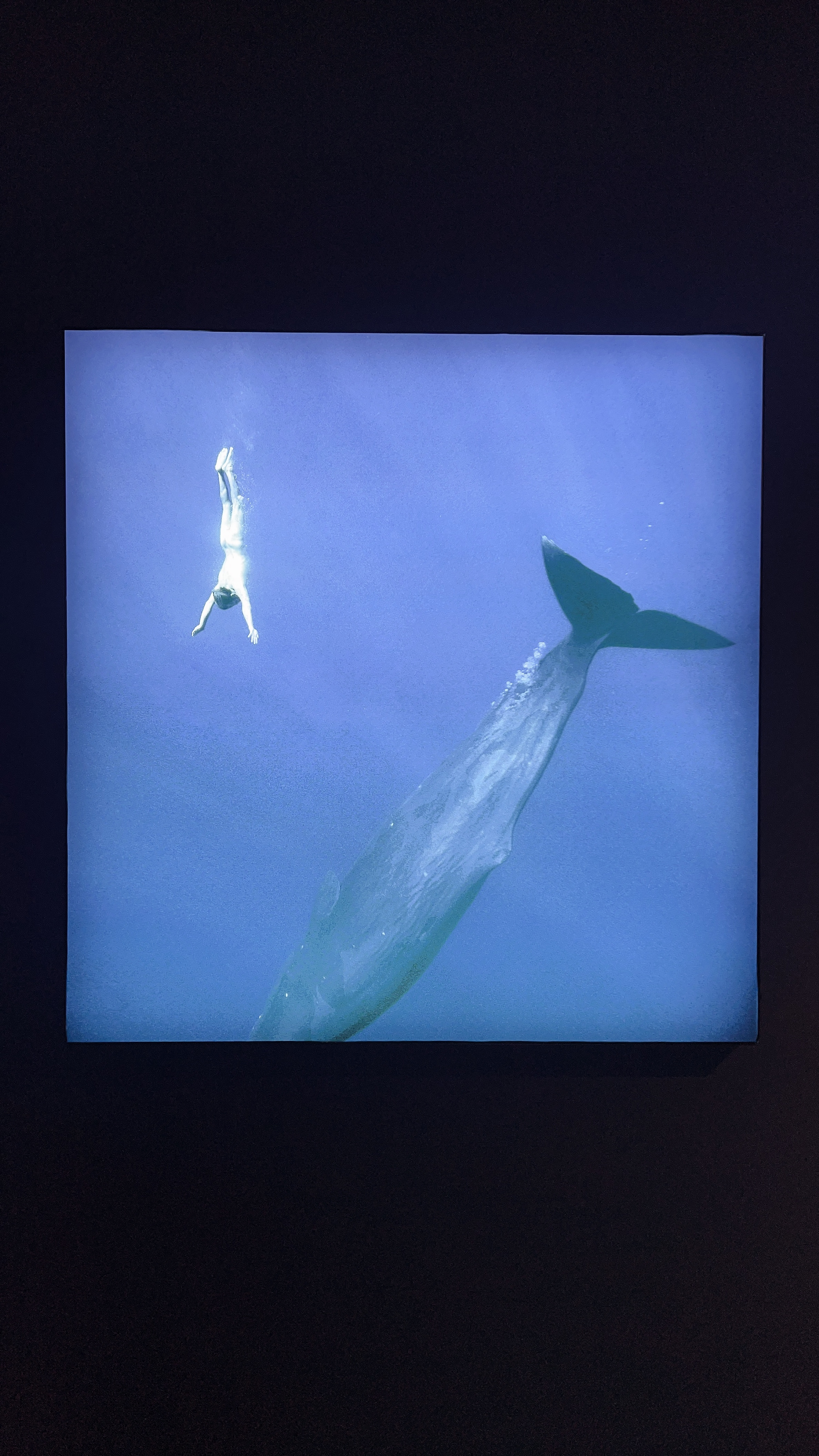 모든 작품은 사진이 어디에서 촬영되었는지, 어떤 고래인지 캡션으로 적혀있다. 대부분이 현재 작가가 살고 있는 인도네시아 발리에서 촬영한 혹등고래(Humpback Whale)다. 모델이 고래와 수영하는 모습이 너무나도 자연스러워서 (사진 속의 모델들이 어류처럼 느껴질 정도) 정화되는 기분이 들었다. 고래에게 피해를 주지 않고 어떻게 사진을 찍었을까 생각하면서 혹등고래가 어떤 고래인지 찾아봤다.