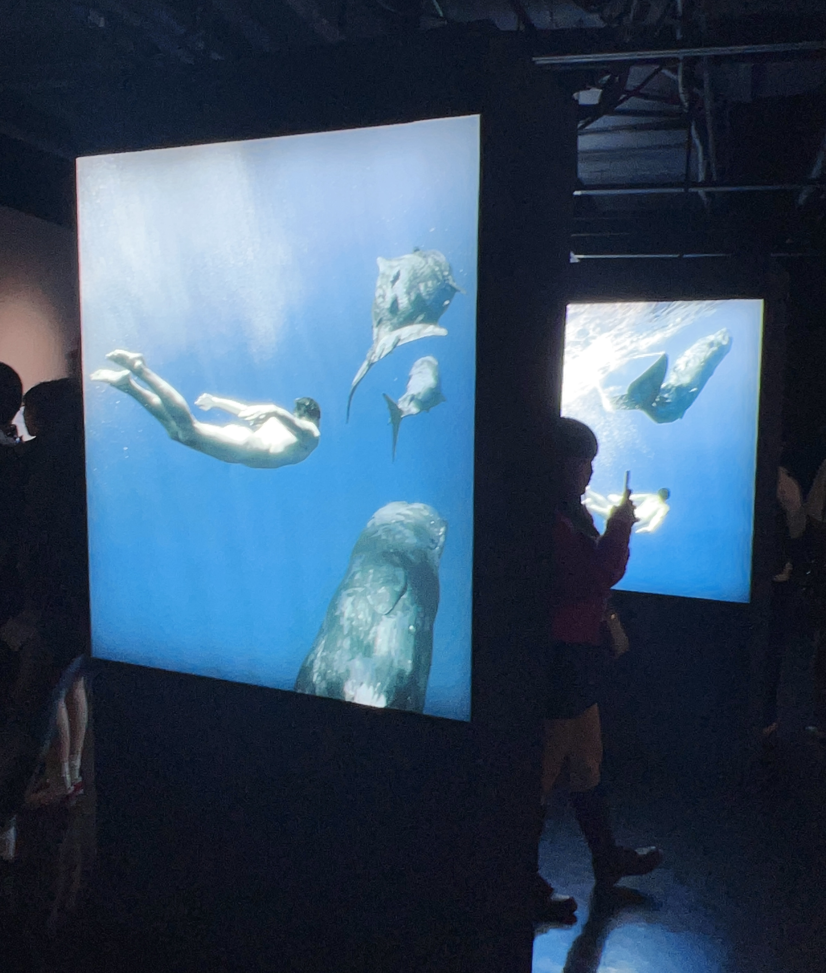 모든 작품은 사진이 어디에서 촬영되었는지, 어떤 고래인지 캡션으로 적혀있다. 대부분이 현재 작가가 살고 있는 인도네시아 발리에서 촬영한 혹등고래(Humpback Whale)다. 모델이 고래와 수영하는 모습이 너무나도 자연스러워서 (사진 속의 모델들이 어류처럼 느껴질 정도) 정화되는 기분이 들었다. 고래에게 피해를 주지 않고 어떻게 사진을 찍었을까 생각하면서 혹등고래가 어떤 고래인지 찾아봤다.