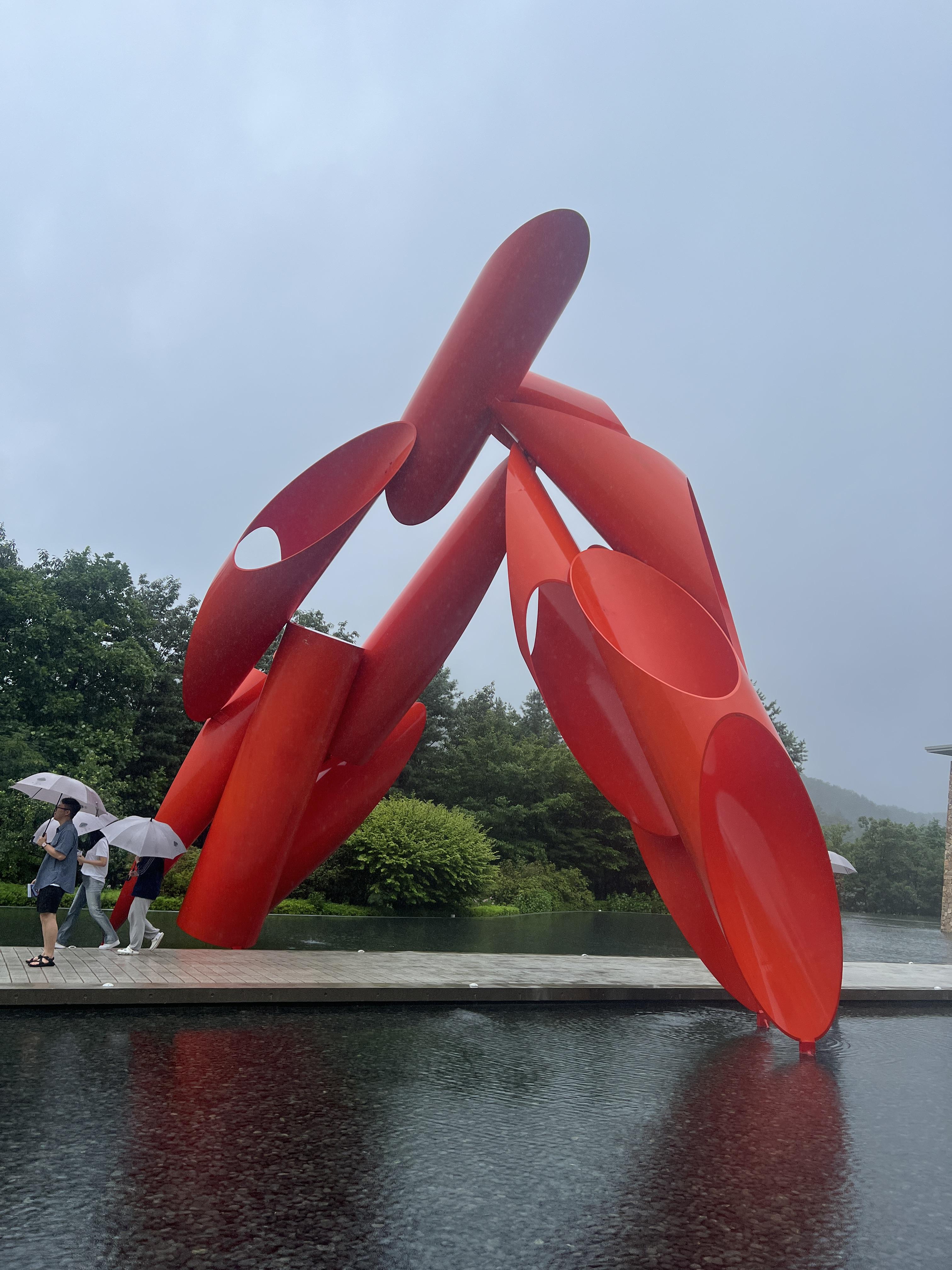 플라워가든에서 본관으로 가는 길에 있는 워터가든에는 러시아계 미국인 알렉산더 리버만(Alexander Liberman)의 Archway라는 이름의 조형물이 있다. 보그의 편집자였고 아트 디렉터였는데 철을 공부한 후로 철을 재료로한 조형물을 제작했다고 한다. 뮤지엄 건축물이 하나의 작품인데도 다른 작품이 그 안에서 어우러지는 것이 신기했다. Archway는 한솔재단의 소장품이었고 안도 타다오가 골라서 물의 정원에 세운 것이라는 이야기가 재미있다.