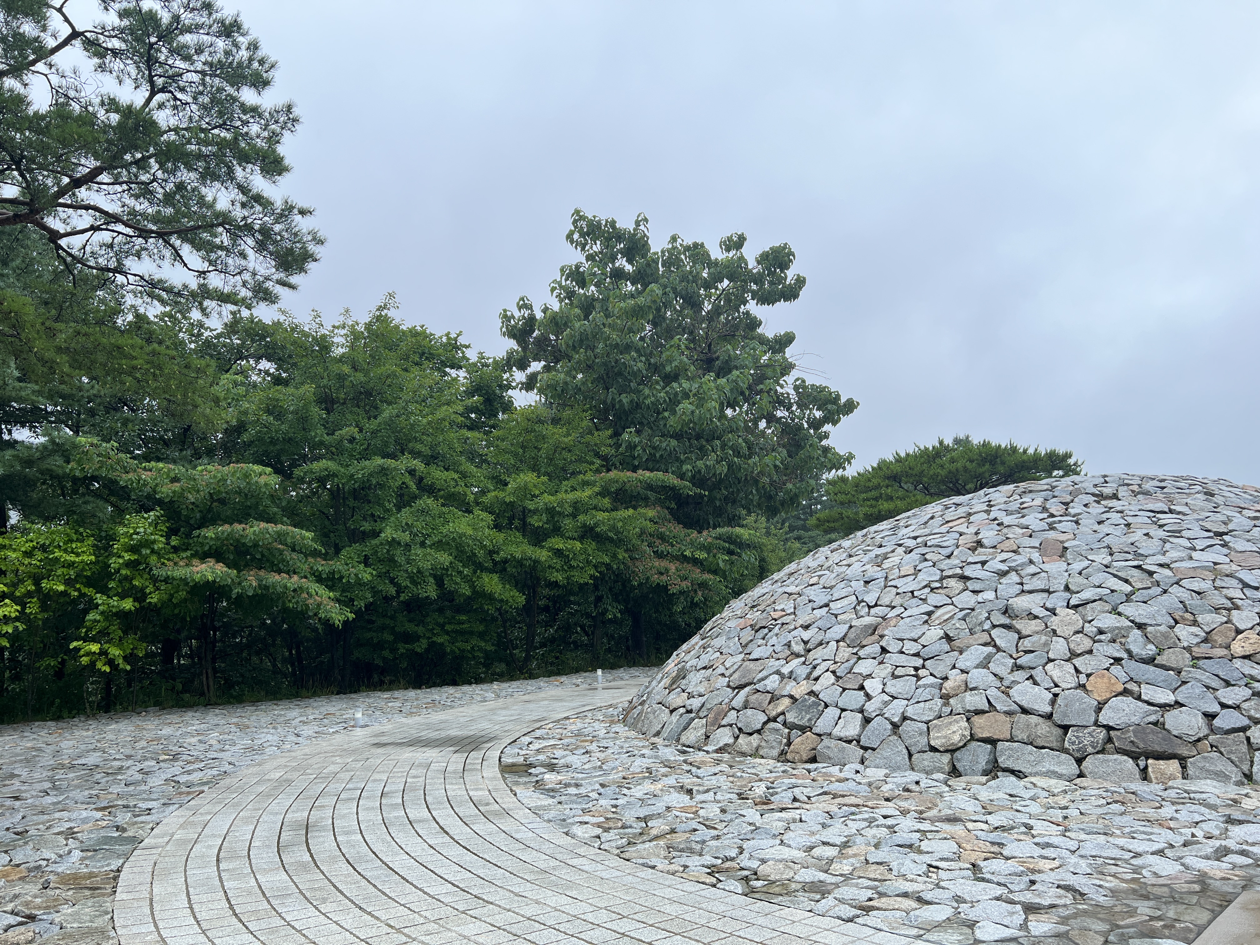 반듯반듯한 박스 안에 있는 것과 같은 뮤지엄 본관을 나오면 명상관과 제임스 터렐관으로 가는 길, 스톤가든으로 이어진다. 신라 고분군을 모티브로 한 돌무덤 형태의 조형물 9개가 있다. 각각의 조형물은 조선팔도를 의미하는 지도같은 거라고 했다. 정확한 설명은 적혀있지 않지만 스톤마운드 하나는 어떤 '도(道)'인지 사인이 세워져 있다.