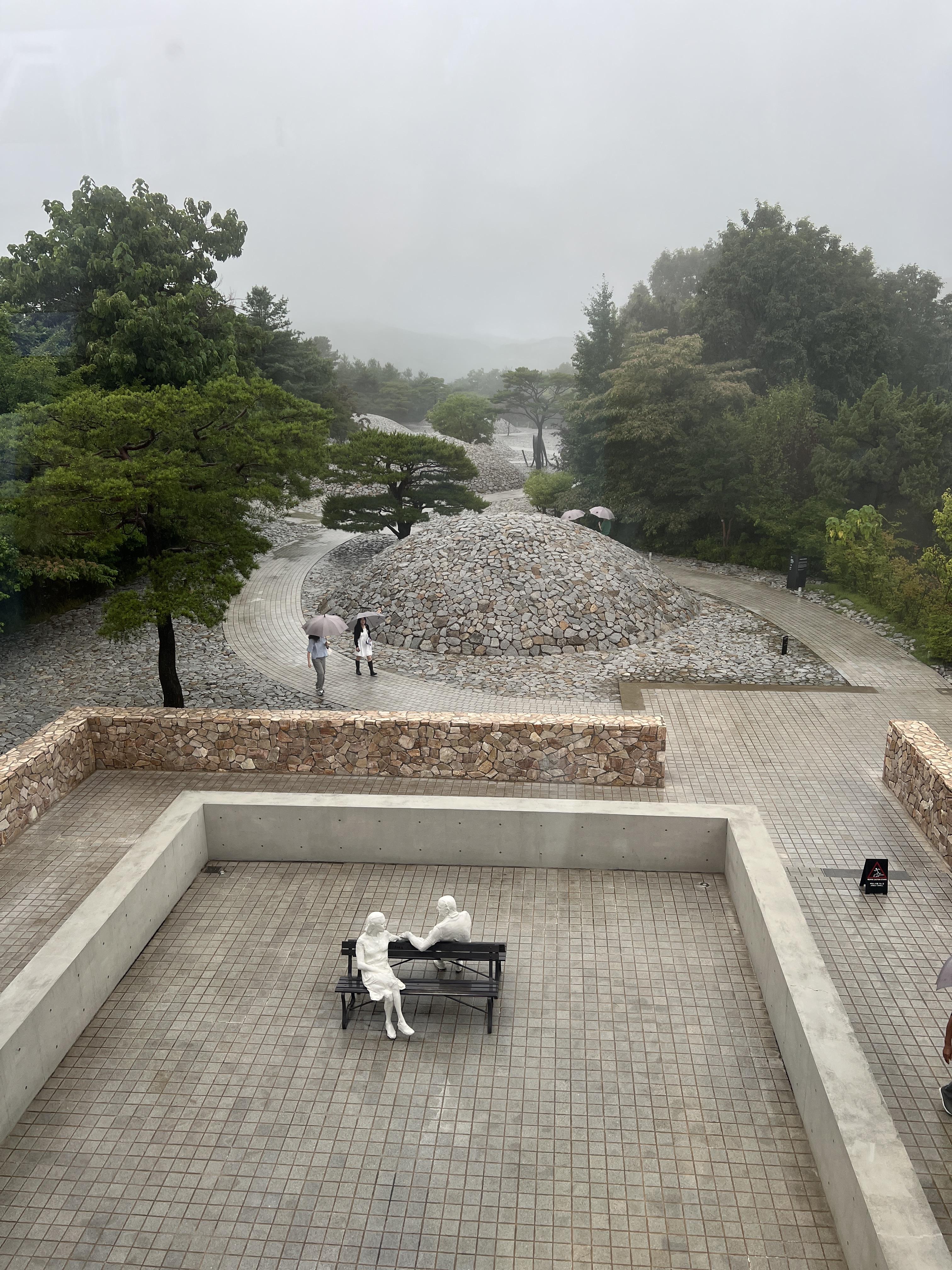 스톤 가든에 들어가기 전 설명글에는 '번잡한 마음을 내려놓고 순례자의 마음으로 작품들을 거닐다 보면 평온한 대지 위에서 돌, 바람, 빛과 하나되는 순간을 경험할 수 있다'고 적혀있다. 그 날은 비가 와서 그런가, 비를 맞는 작품들과 신발이 다 젖어버린 나와 친구도 작품이 된 것만 같은 기분이 살짝 들었다.