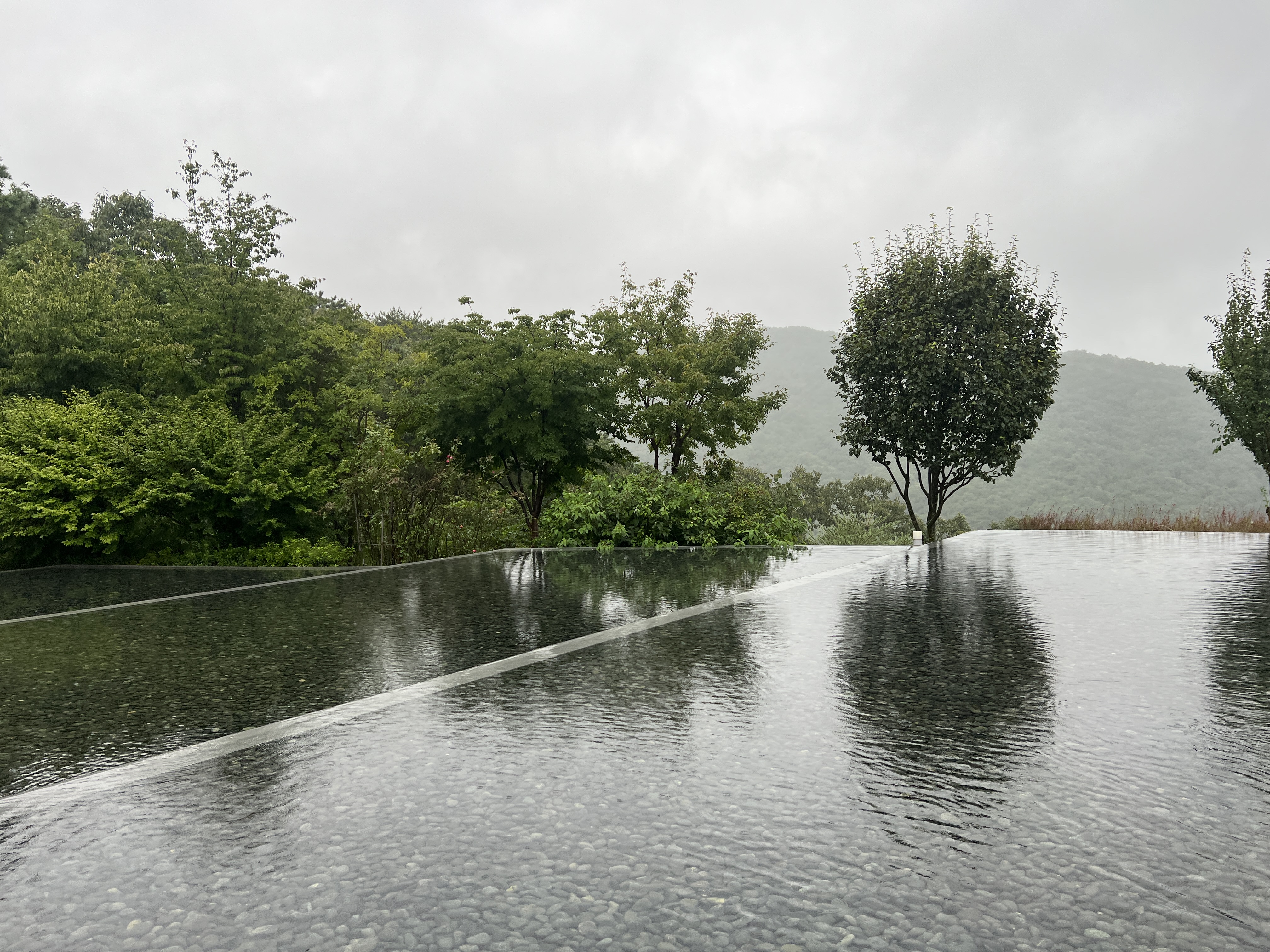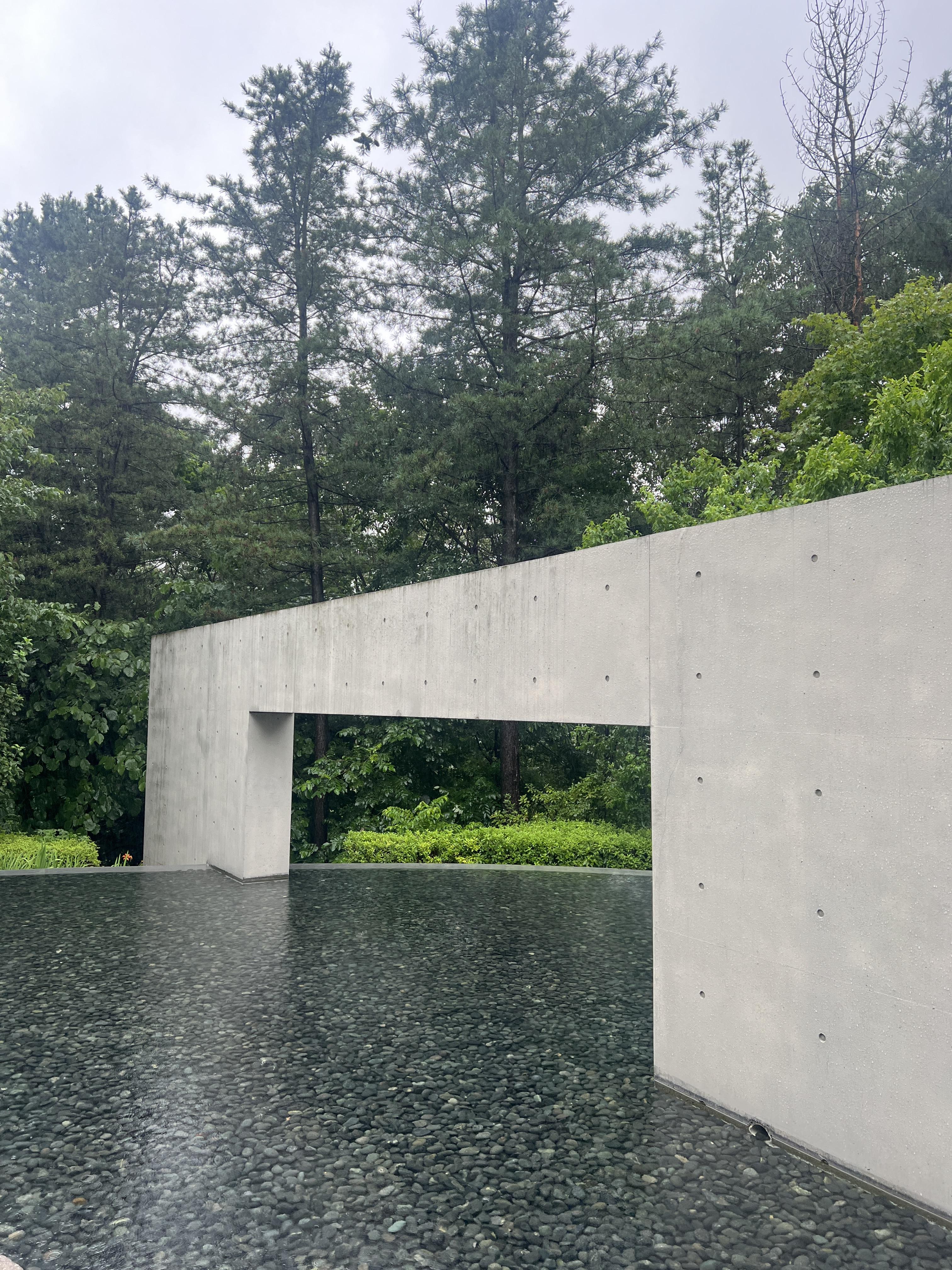 안도 타다오가 수면에 하늘을 담고 싶어서 검정색 워터가든 정원에 흑색의 해미석을 사용했다고 한다. 검정색 돌이 거울과 같은 역할을 하는데, Archway가 수면에 닿는 면적이 작기도 해서 마치 조형물이 물 위에 떠있는 것 처럼 보인다. 물이 썩지 않도록, 수면이 더러워지지 않도록 매일 깨끗하게 청소한다는 tmi도 들었다. (그 날은 비가 왔는데도 정말 깨끗했다! )